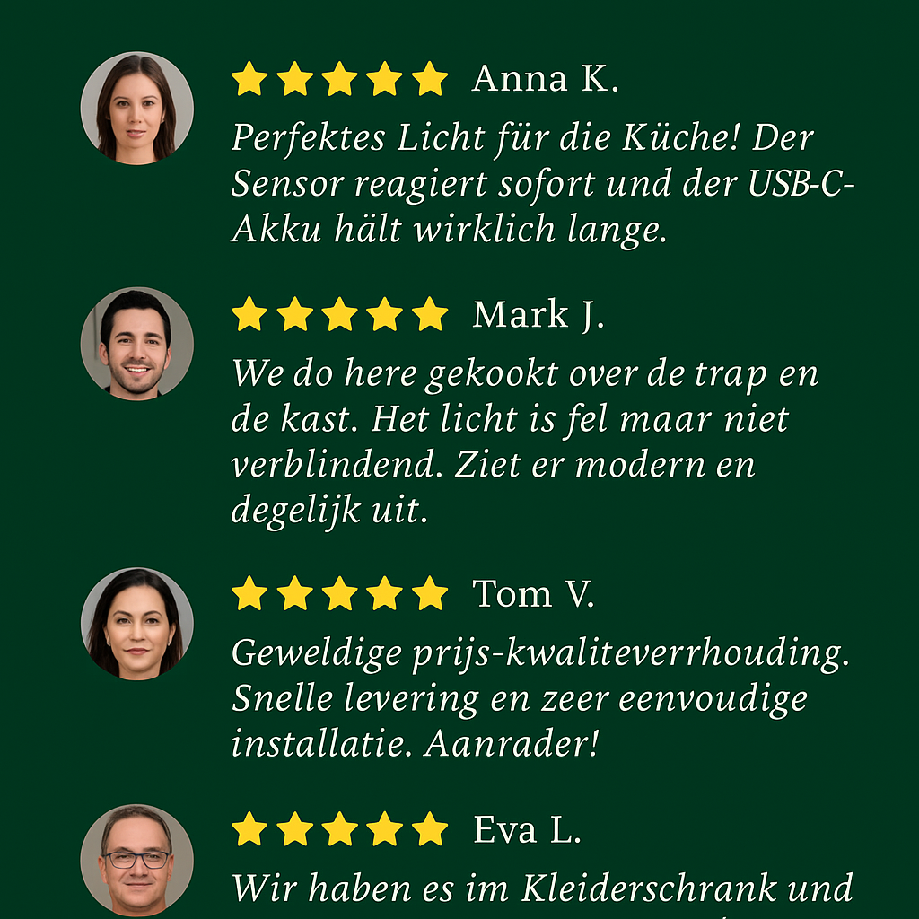 Thousands of happy customers across Germany and the Netherlands are transforming their homes with GlowBar Light. Easy to install, motion-activated, and USB-C rechargeable – the perfect lighting solution for every space