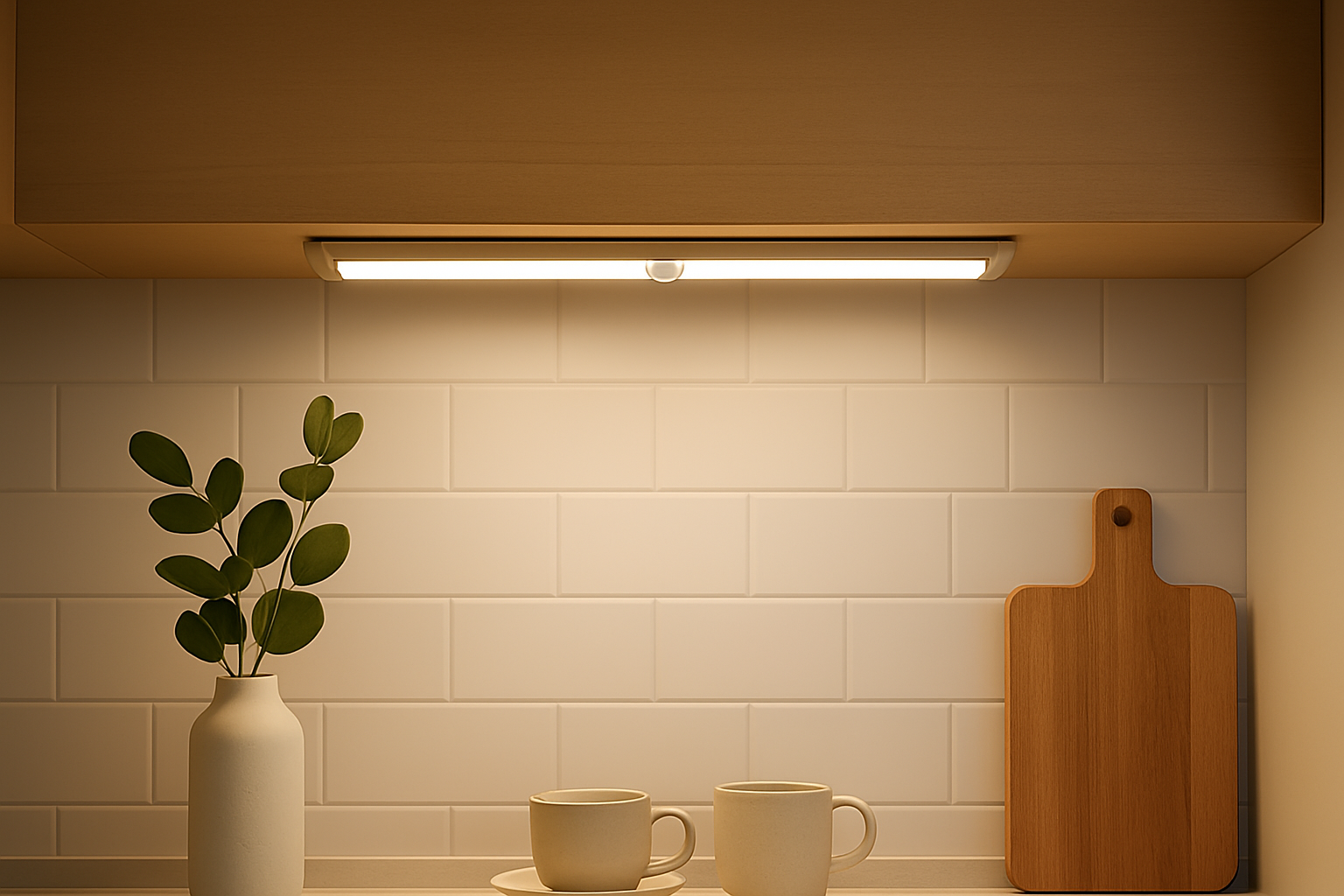 Wireless LED Light with Motion Sensor – Illuminate any space in seconds. USB-C rechargeable, easy to install, and perfect for kitchens, wardrobes, stairs, or offices.